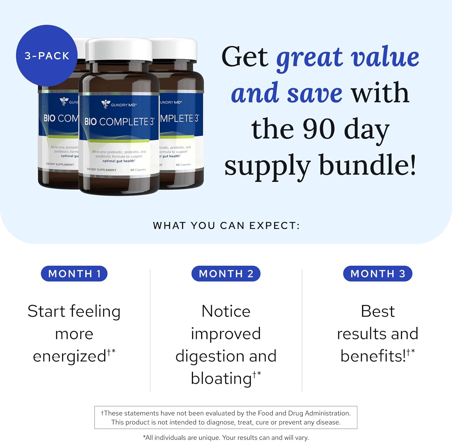 Gundry MD® Bio Complete 3 – Prebiotic, Probiotic, Postbiotic to Support Optimal Gut Health, 30 Day Supply (90 Day Supply)