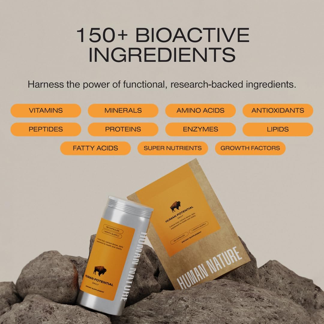 Human Nature Human Potential: Wild & Grass Fed Bison Organ Supplement with 150+ Nature-Made Nutrients for Energy, Vitality, Focus, & Immunity