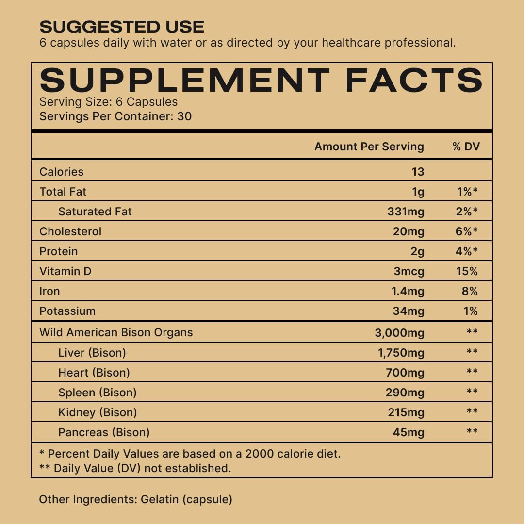 Immunity & Hormone Balance: With Vitamin D, selenium, and zinc, this bison organ supplement enhances immunity, aids hormone & cortisol health, and supports recovery with 150+ bioactive nutrients.