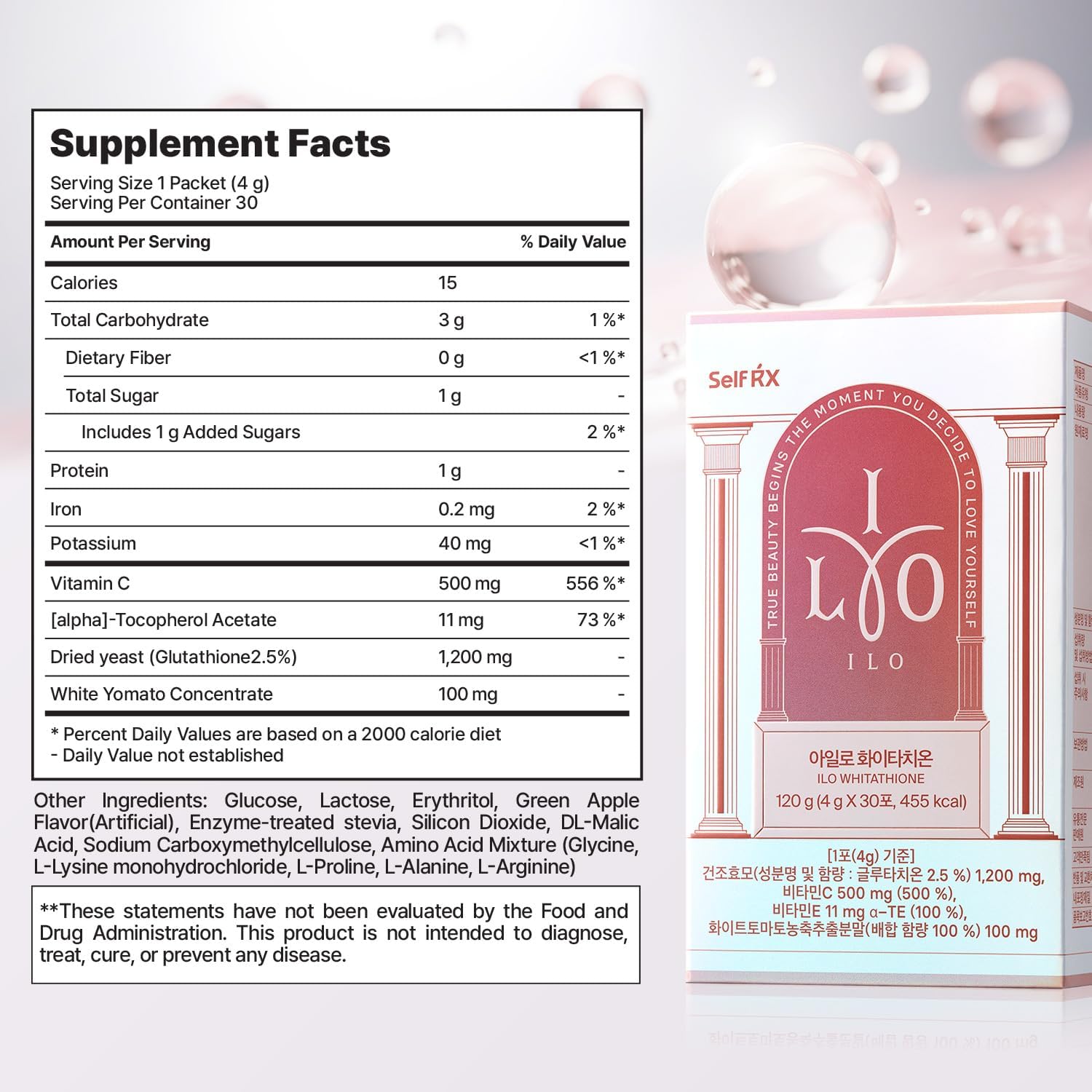 ILO Whitathione – Glutathione + White Tomato Antioxidant Powder with Vitamin C & E | Daily Glow Support | 30 Convenient Stick Packs