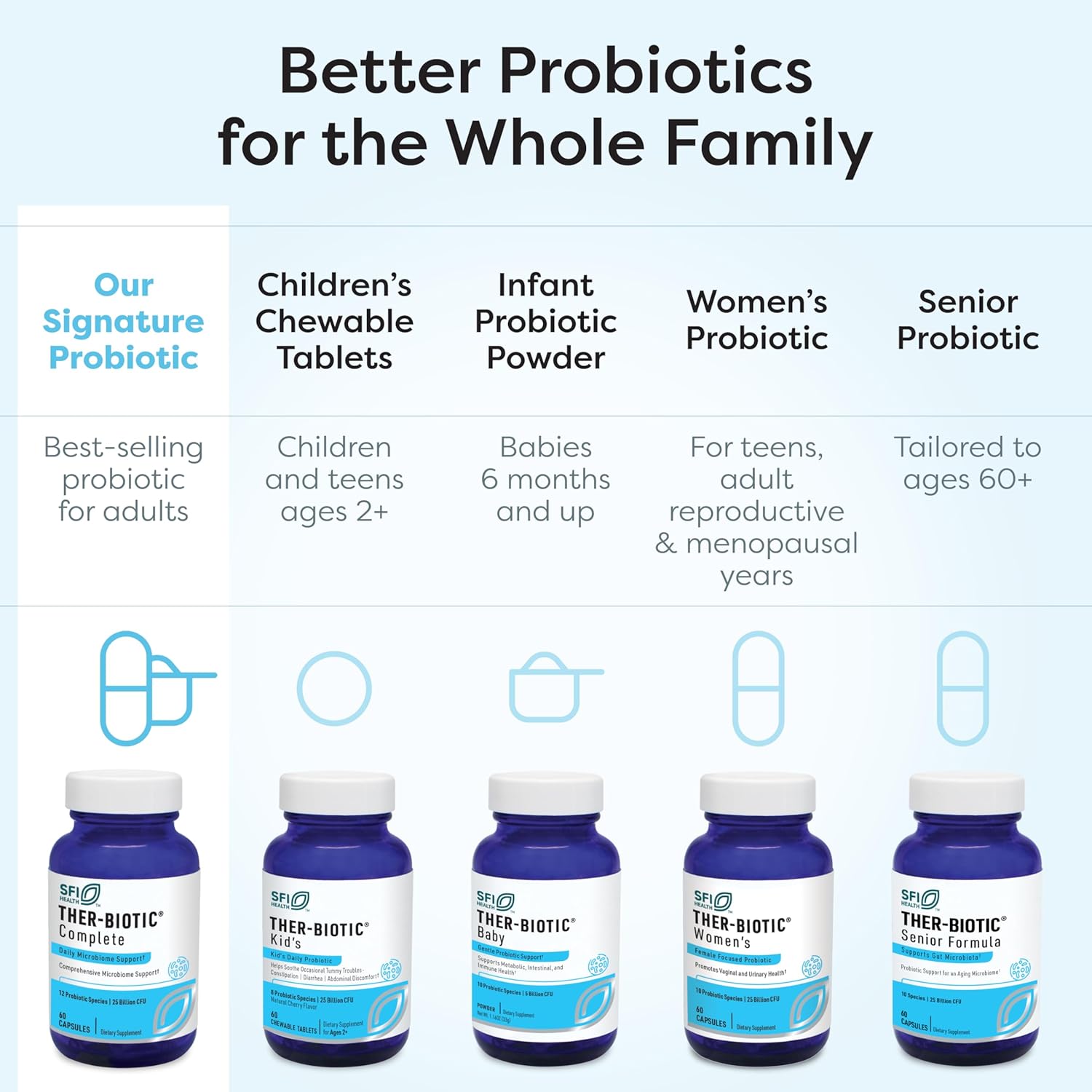 Klaire Labs SFI Health Ther-Biotic Complete – Hypoallergenic Probiotics for Women & Men – Acid-Stable Probiotic Supplement – 12 Species for Immune & Digestive Health – 25 Billion CFU (120 Capsules)