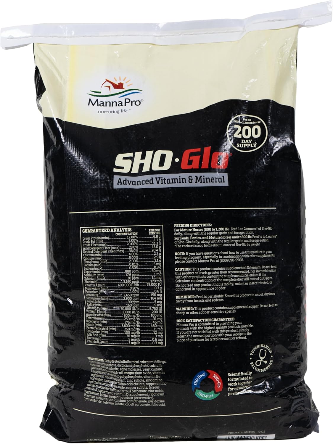 Manna Pro Sho-Glo is a complete vitamin and mineral supplement to support the health and condition of your horse. Sho-Glo enhances the nutritional value of any feed to ensure your horse has the right nutrient balance for their best health and performance. The vitamins and minerals support healthy skin and shiny coats, while added anti-oxidants help boost the immune system. This highly-palatable and easy-to-feed supplement is scientifically formulated and veterinarian recommended. Manna Pro Sho-Glo is formulated to work together with Sho-Flex and Sho-Hoof for advanced performance.
