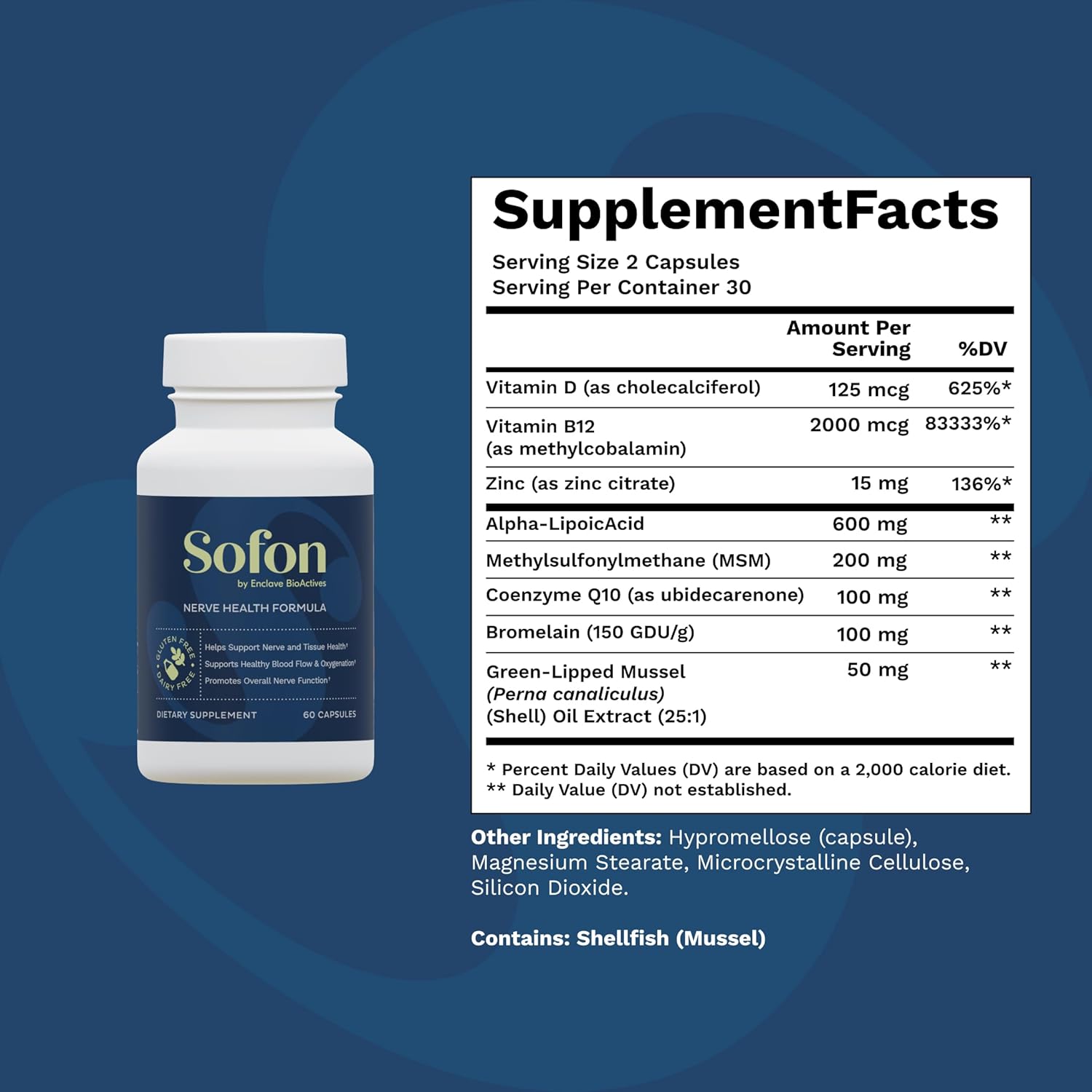 Nerve Support Supplement (60 Caps, 30 Servings) : Neuropathy Supplements Blend for Healthy Feet with Vitamin D, B12, Zinc, Alpha-Lipoic Acid, MSM, Coenzyme Q10, Bromelain, & Green-Lipped Mussel