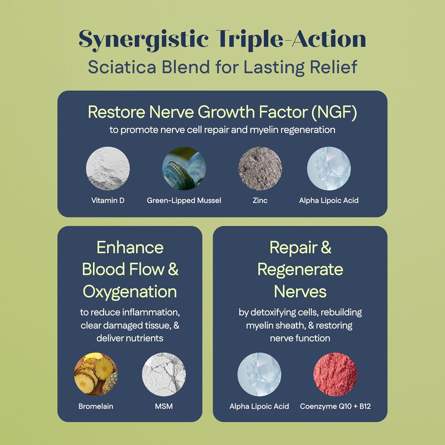 3-Step Sciatica & Foot Neuropathy Relief Powerhouse: Formulated with ingredients that contribute to restoring Nerve Growth Factor, enhancing blood flow & oxygenation, and regenerating nerves!