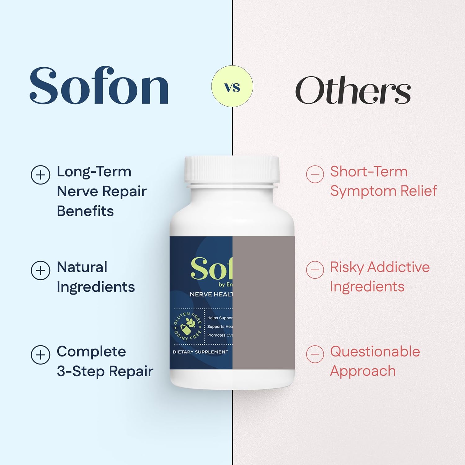 Natural, Non-Addictive, & Side-Effect Free: Free of risky chemicals and habit-forming ingredients, Sofon includes every best vitamin for neuropathy, combined with pure Alpha-Lipoic Acid & other beneficial nutrients!