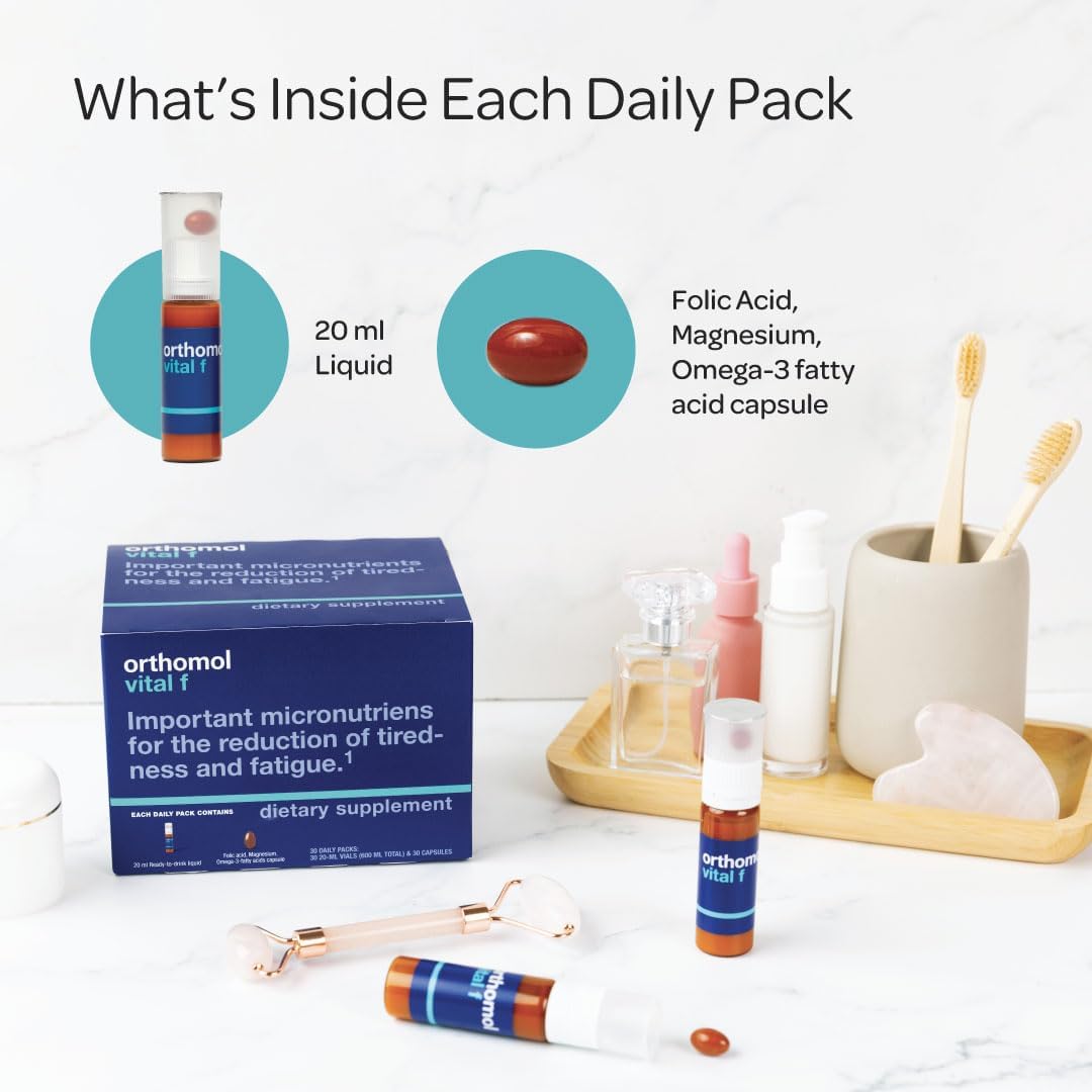 Orthomol Vital F Vial for Women, 30-Day Vitamin Supplement – Daily Energy, Fatigue Reduction & Vitality Support with Vitamins A, B, C, D, E, K, Omega-3 & Iodine