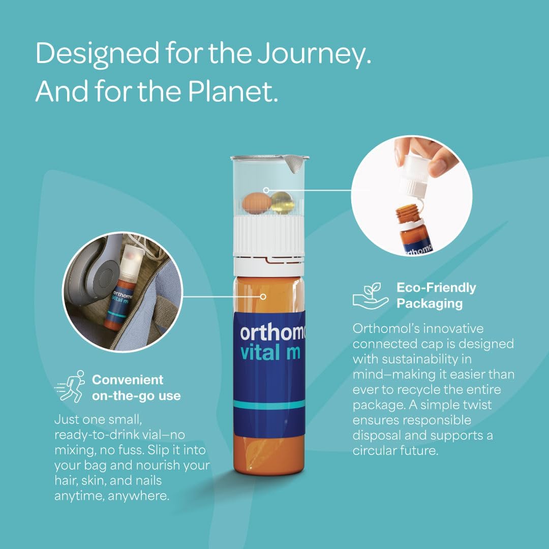 Orthomol Vital M Vial – 30-Day Men’s Vitamin Supplement with A, B, C, D, E, K, Iodine & Omega-3 – Supports Male Energy & Vitality