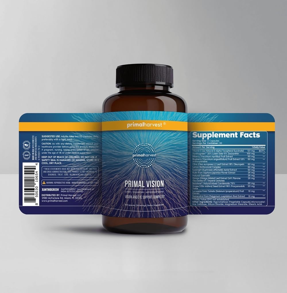 Primal Harvest Vision and Eye Support Complex with Lutein, Zeaxanthin Plus Vitamin E, Bilberry Extract, and Blueberry Extract, for Overall Eye Health for Men and Women, 2 Pack