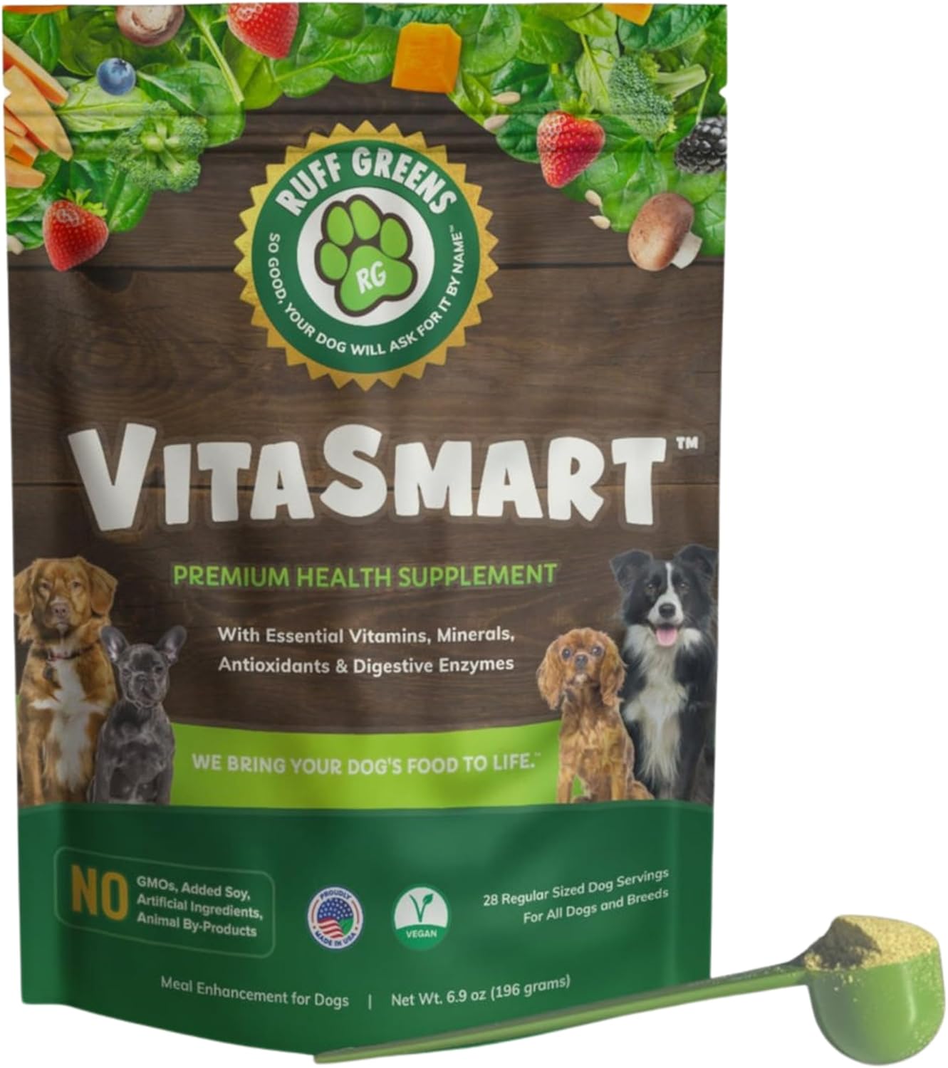 Ruff Greens – Dog Food Topper, Hip & Joint Supplement for Dogs – Probiotics Digestive Enzymes Powder for Mobility Support, Essential Vitamins & Minerals, 6.9 Ounce