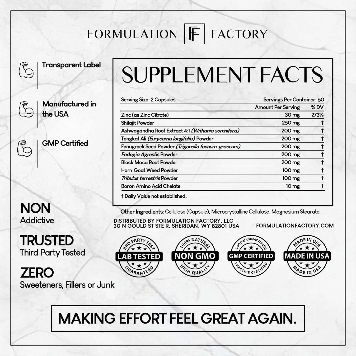 [Trusted by Men, Loved for Results] Easy to swallow “00” capsules. Our supplement is crafted in an FDA GMP-registered facility in the USA, ensuring purity and effectiveness with every capsule.
