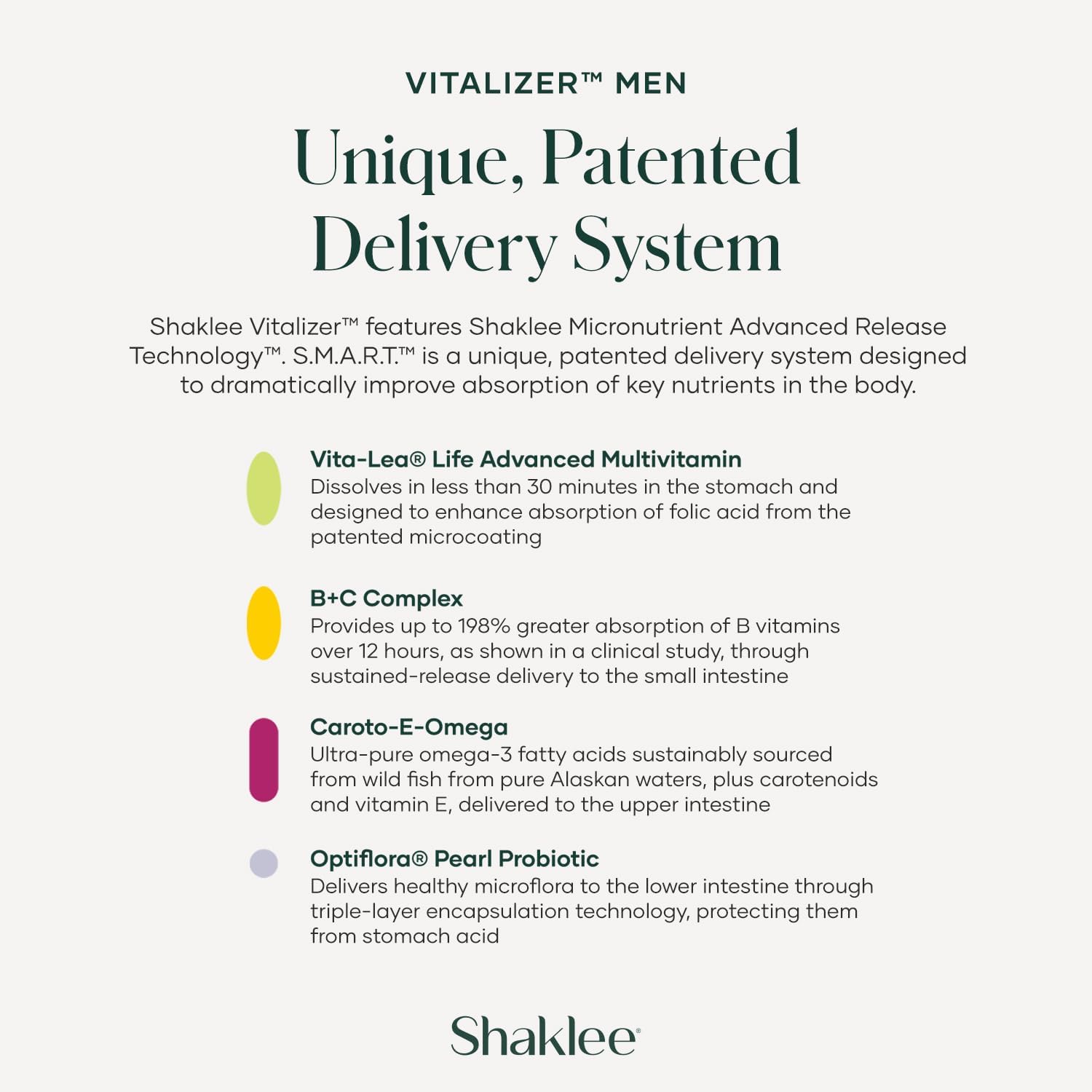 Enhanced Nutrient Absorption: Powered by patented absorption technology, Vitalizer Men maximizes nutrient uptake, ensuring that each nutrient is efficiently absorbed for optimal health benefits.