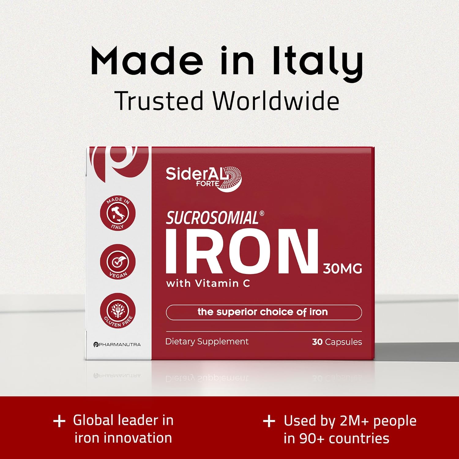 SiderAL Forte Iron Supplement Clinically Shown to Increase Iron Without Side Effects | Sucrosomial High Absorption Gentle Iron Pills for Women and Men | Vitamin C | Anemia & Energy Support | 30 Count