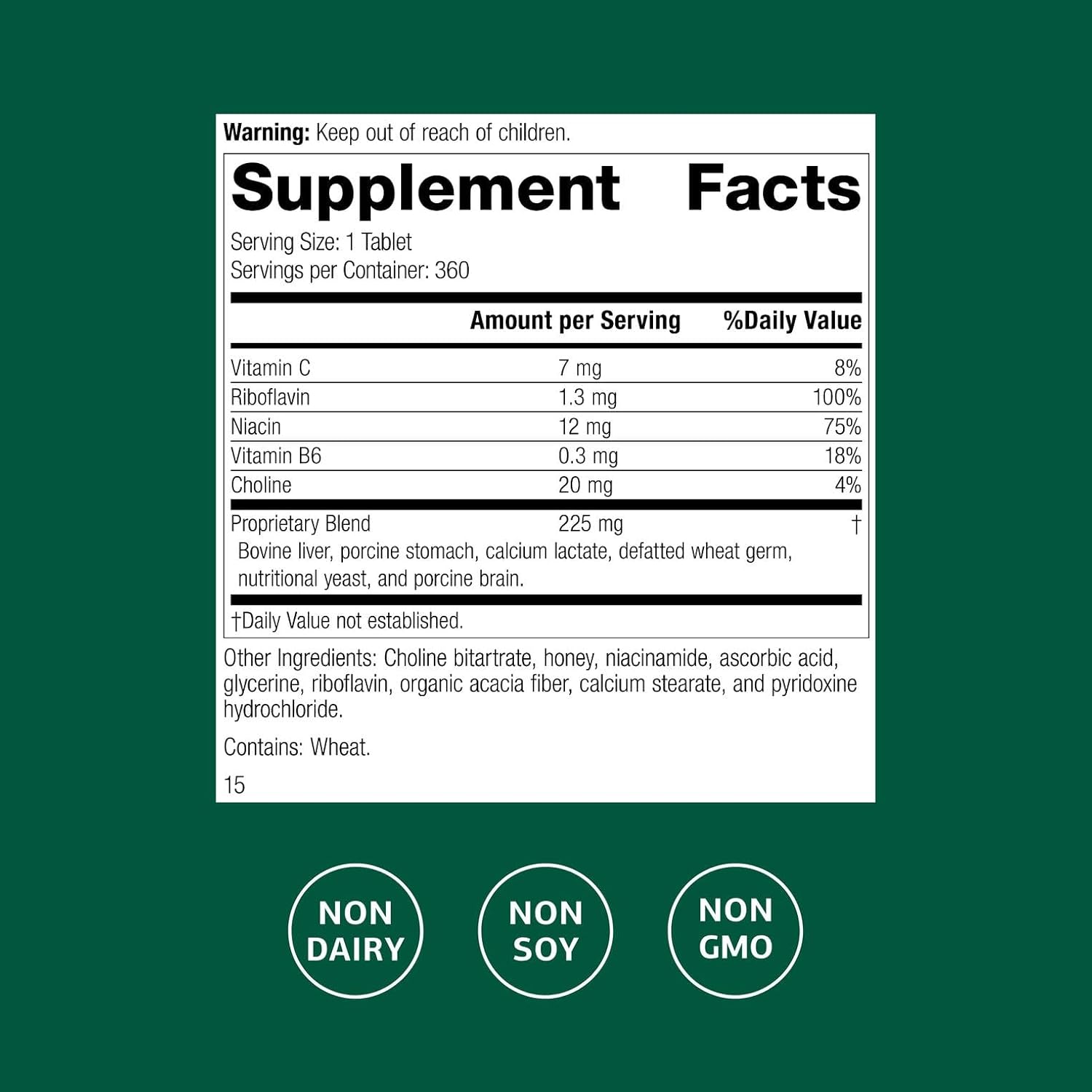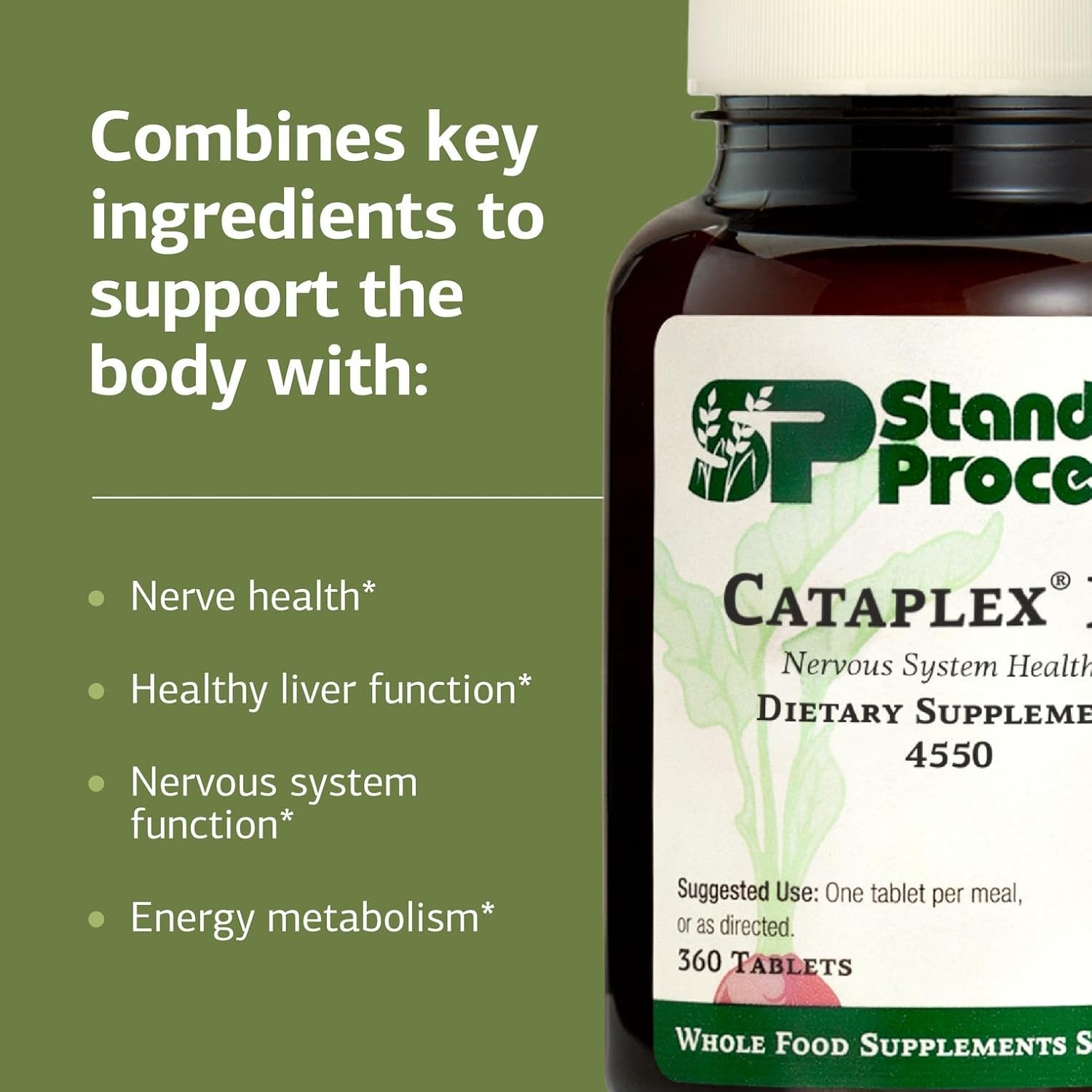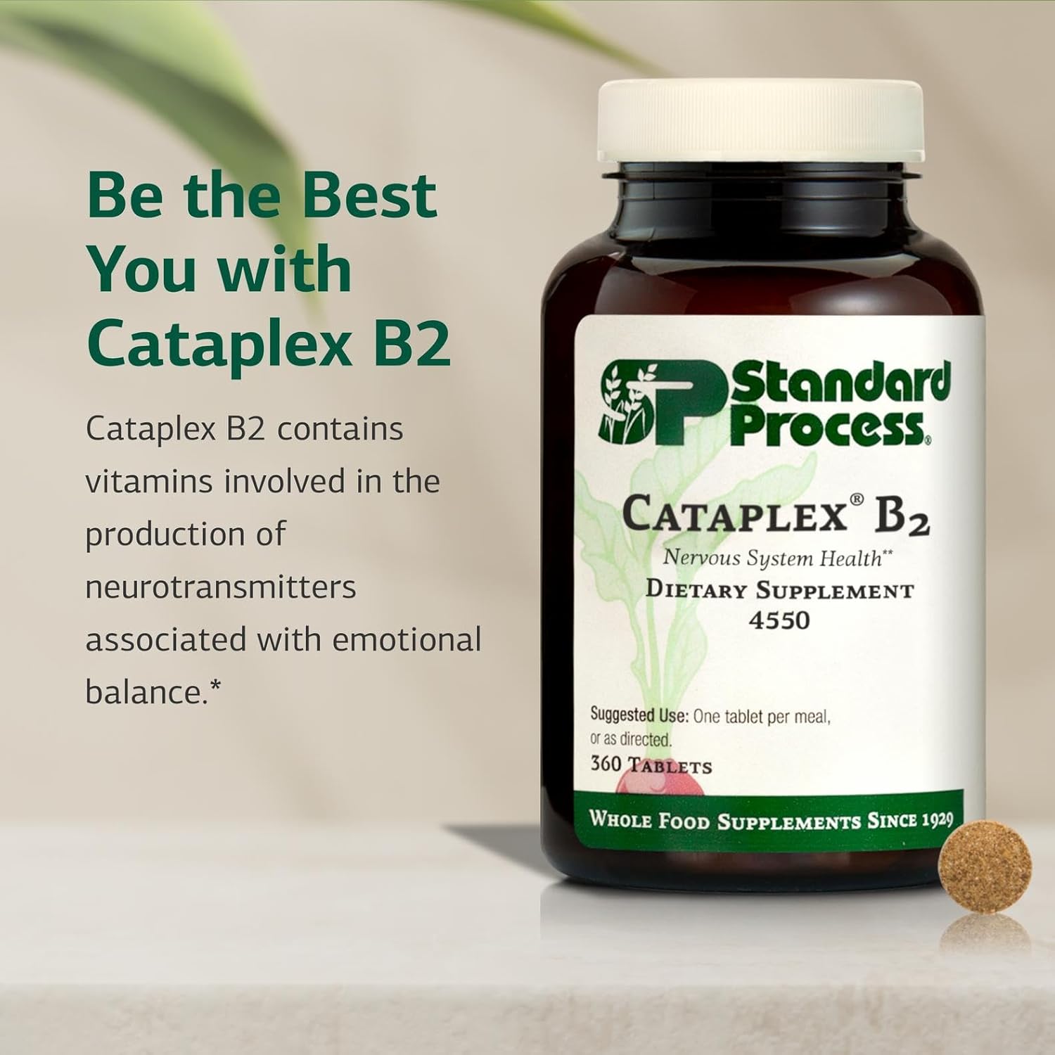 Standard Process Inc. Cataplex B2 – Whole Food Nervous System Supplements, Metabolism, Brain Supplement and Liver Support with Calcium Lactate, Riboflavin, Wheat Germ, Choline and More – 360 Tablets