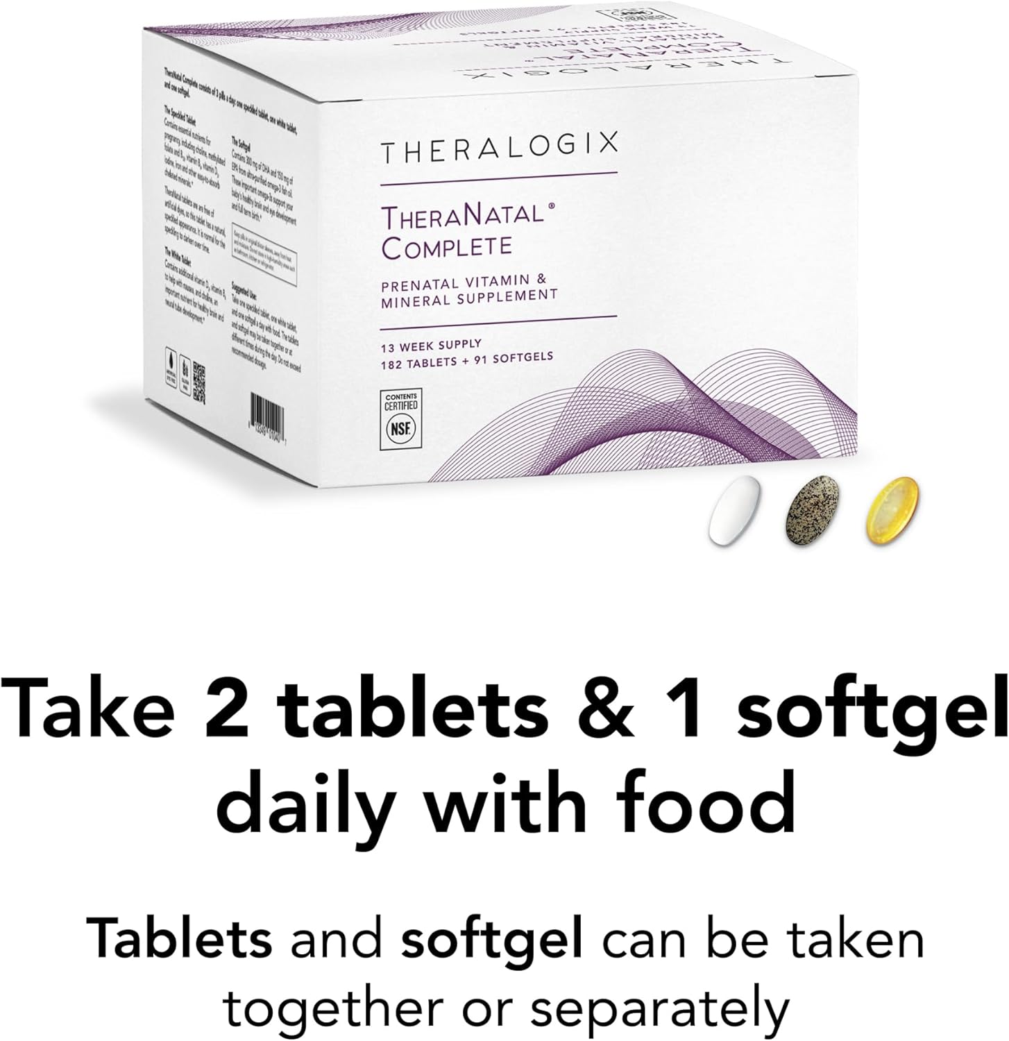 Theralogix TheraNatal Complete Prenatal Vitamin Supplement – 91-Day Supply – with DHA, Vitamin D3, Folate, Iodine, Choline, Iron, Vitamin B6 & More – NSF Certified – 182 Tablets & 91 Softgels