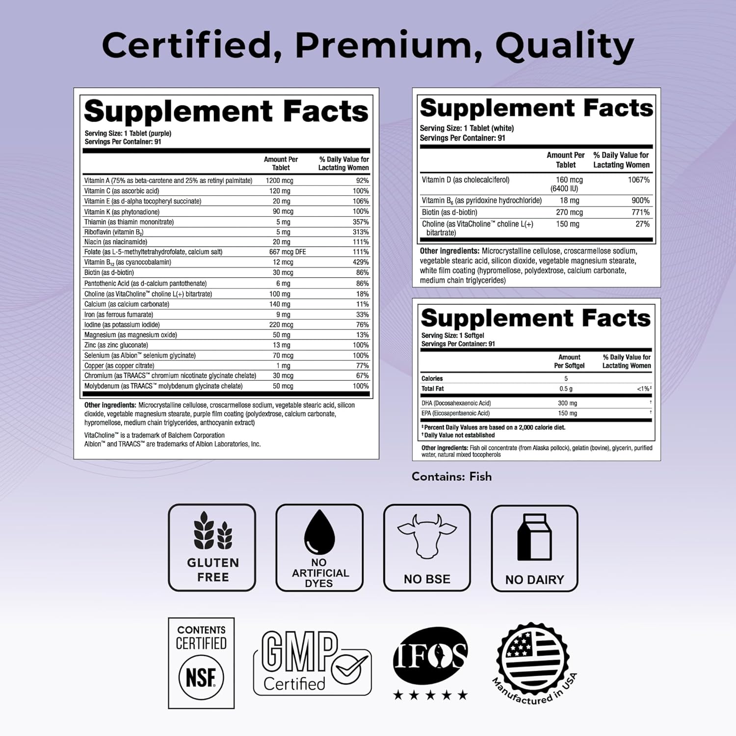 Theralogix TheraNatal Lactation Complete Postnatal Vitamin Supplement – 13-Week Supply – Breastfeeding Supplement for Women – NSF Certified – 182 Tablets & 91 Softgels