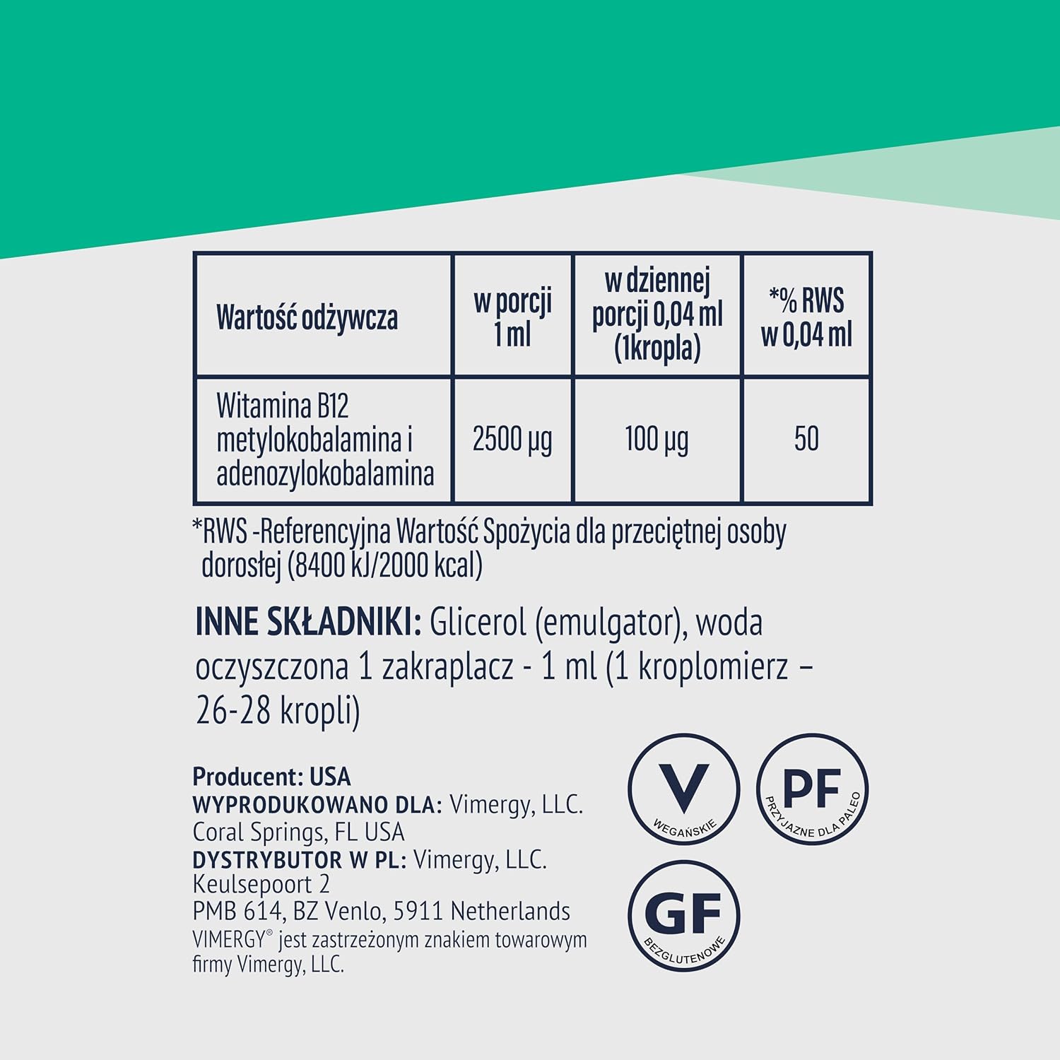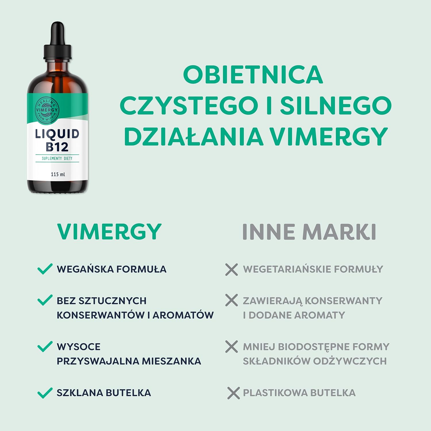 PEACE OF MIND CLEAN. Unlike gummies or alcohol-based carriers, Vimergy Liquid drops B-12 is made with plant-based, organic, liquid flax glycerin. Gentle on the stomach, and have a naturally sweet taste.* Vit b12